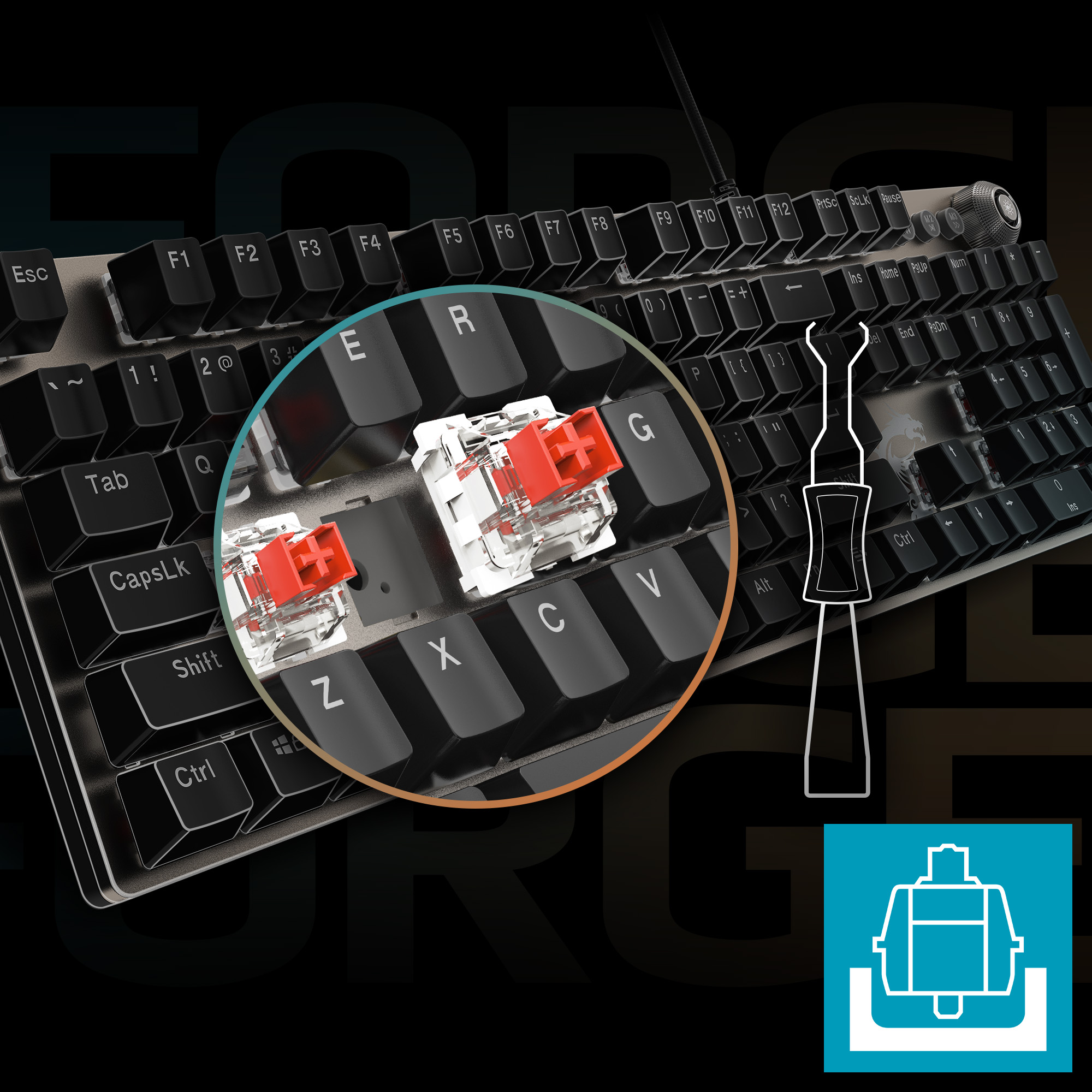 Grâce aux switches Red mécaniques robustes et résistants à la poussière, vous profitez d’une course linéaire satisfaisante, offrant une sensation de frappe précise à chaque pression de touche. Votre expérience de jeu et de frappe sont améliorées, même pendant de longues heures d’utilisation, ce qui est complété par le design élégant des touches.